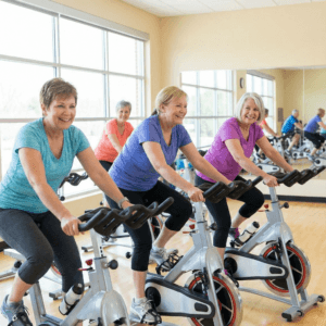 Moving through water gives you resistance and support at the same time. It takes pressure off joints, and you can go at your own pace. Local pools usually offer beginner water aerobics classes where there’s no pressure to keep up. - Stationary Cycling