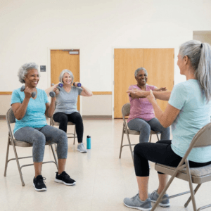 If you’re not ready for long walks or if the weather’s bad, marching in place is a great choice. You can do this while watching TV or listening to a playlist. Try lifting your knees a little higher to increase the challenge as you get comfortable with it. - Chair Exercises